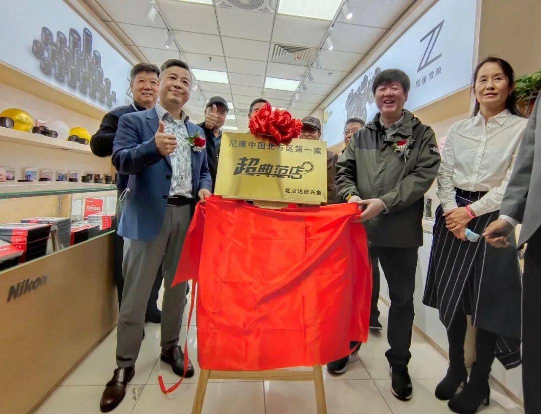 尼康中國北方區(qū)第一家超典范店重裝開業(yè),尼康映像儀器銷售(中國)有限公司副總經理吳文鈞等為新店開業(yè)揭牌。