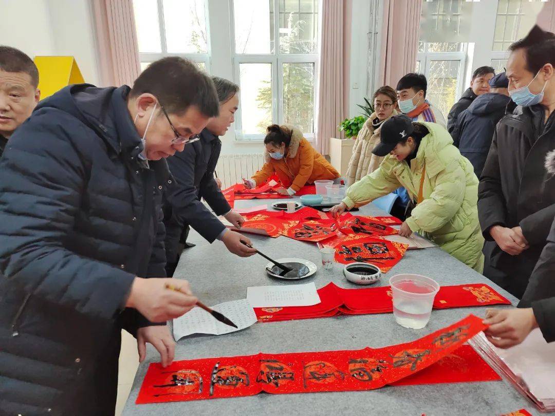 為參觀展覽的群眾贈(zèng)送春聯(lián)、送上新春祝福