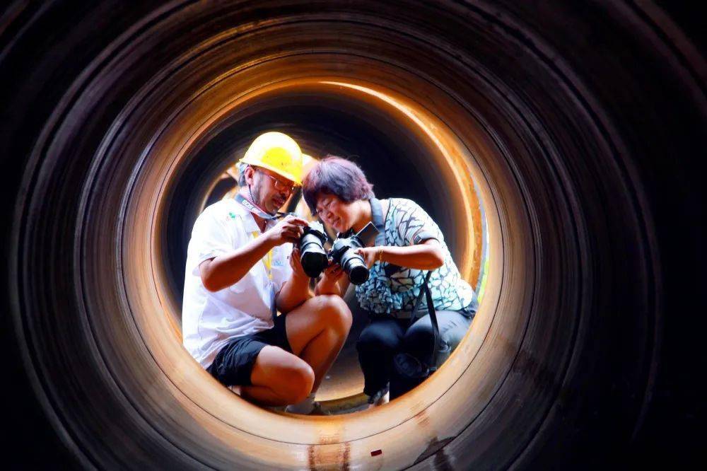 在忻州市改建城市的7451工程中,兩位攝影師在工程宣傳創(chuàng)作中互相交流所拍作品。圈型鋼筋的外部形成了框式構(gòu)圖,也給予了一種美的光影視覺。