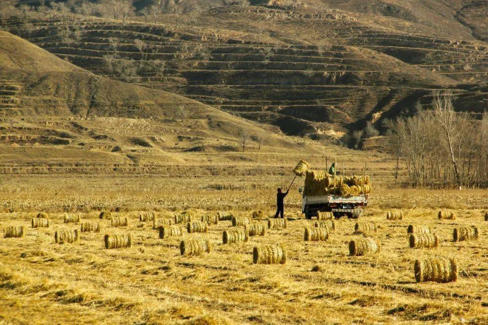 照片拍攝于忻州市金山湖附近,時(shí)間2017年12月17日.用光圈F10,速度100拍攝了這張作品.金色的秋季,山谷空曠.一垛垛打包好的草捆像一個(gè)個(gè)音符,將為凈化空氣秸稈再利用,增添畜牧儲(chǔ)草奏響幸福的樂章。