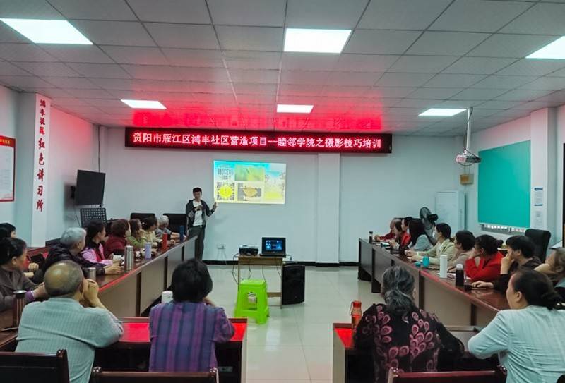4月20日,由四川省資陽市民政局主辦,資陽市心公益社會(huì)工作服務(wù)中心承辦,鴻豐社區(qū)協(xié)辦的“資陽市雁江區(qū)鴻豐社區(qū)營造服務(wù)采購項(xiàng)目——睦鄰學(xué)院之?dāng)z影技巧培訓(xùn)”活動(dòng),在社區(qū)會(huì)議室順利開展,23名攝影愛好者、3名社區(qū)干部、1名黨員社工和4名社工參與。