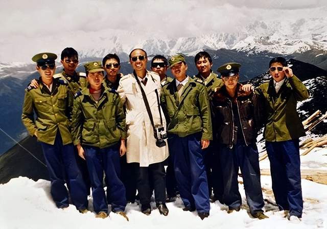 耿興余(中)在海拔5130米空軍雷達站與解放軍戰(zhàn)士在一起。