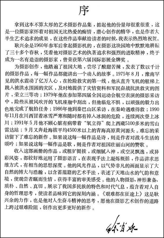 著名攝影家徐肖冰給耿興余攝影作品集寫的“序”。