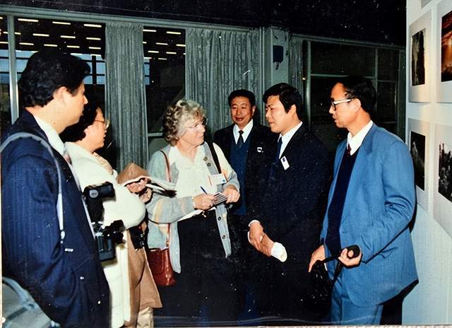 耿興余(右1)隨中國攝影家代表團訪問瑞典,與瑞典攝影家交流。
