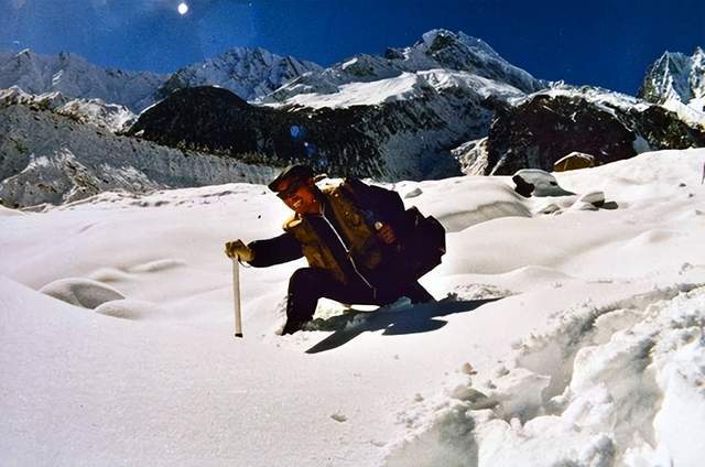 耿興余在川西貢嘎山冰川,踩著一米深的積雪,拍攝祖國風光。
