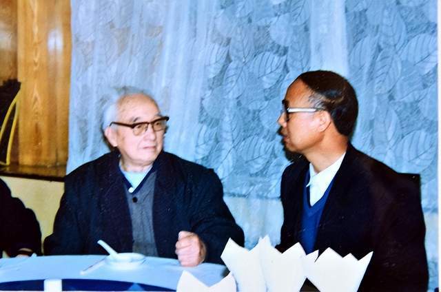 耿興余與文藝理論家王朝聞在一起談?wù)撐乃嚴碚?/p>