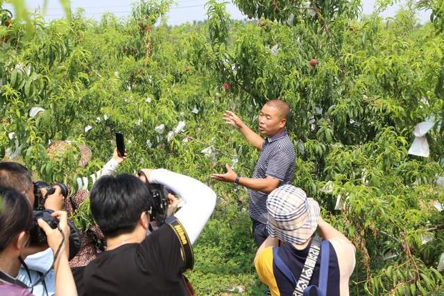 上午8時40分,登封嵩少種植專業(yè)合作社總經理術志闖帶領眾多攝影愛好者穿過七彩風車走廊走進桃園,“2018年我們流傳村中土地1600多畝,主要種的有黃桃、蟠桃、水蜜桃,再有一周水蜜桃就要進入收獲期,預計整個采摘活動從6月17日開始,將一直持續(xù)到9月下旬……”隨著術經理的一番簡單介紹,登封市攝影家協(xié)會的廣大攝影愛好者架起“長槍短炮”很快融入果園。這也標志著登封市石道鄉(xiāng)首屆“美麗術村 潁源果香”攝影大賽正式啟動。