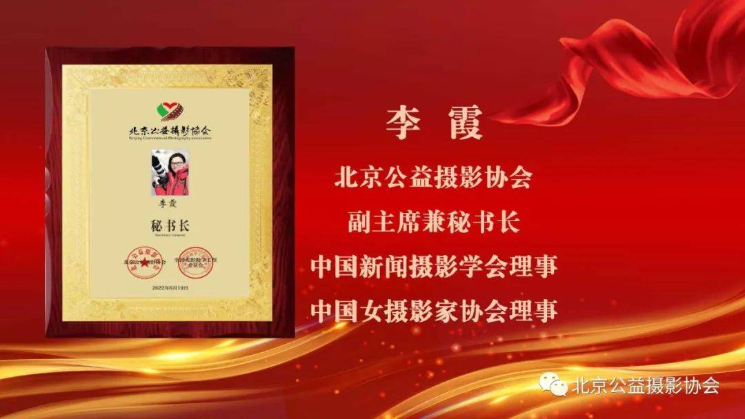 國家新聞攝影學會理事、國家女攝影家協(xié)會理事李霞女士當選為北京公益攝影協(xié)會副主席兼秘書長