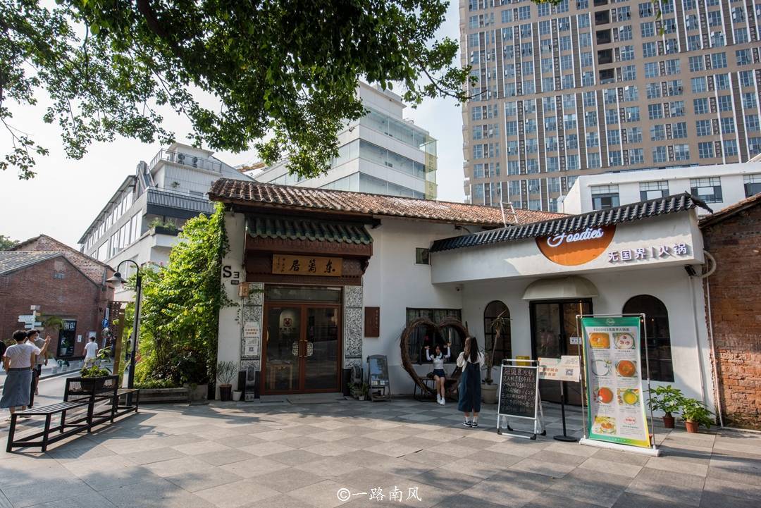 在這個創(chuàng)意園,我們可以找到很多氣質(zhì)獨(dú)特的建筑,找到很多適合拍照的地方,走累了也有地方喝東西,印象最深刻的是主入口的標(biāo)志性建筑特地設(shè)計(jì)成嶺南傳統(tǒng)庭院的形狀,穿過這個似門非門的建筑會看到港式飲品店、夜西坊、茶館、采耳店、雜貨鋪,甚至還有一間東平大押,這是廣州市的標(biāo)志式當(dāng)鋪,也是舊時的城市地標(biāo)。