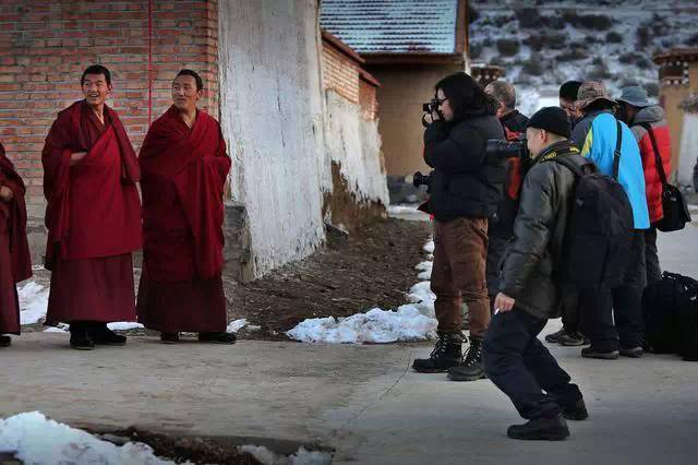 同樣還有藏區(qū)的孩子,也變成了擺拍的對象。
