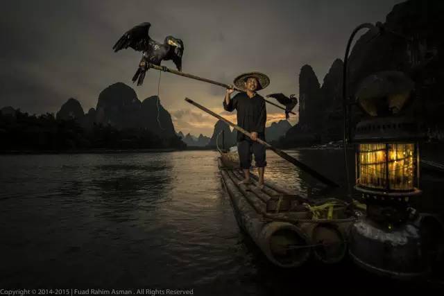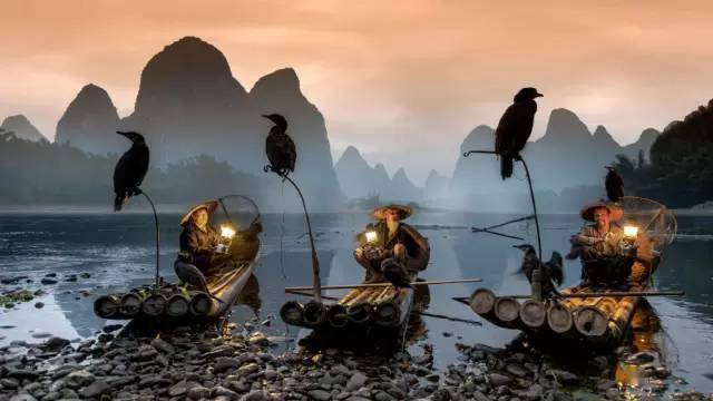 漓江漁民的工作分為早班和晚班,清晨,漁民們拿上道具——魚鷹和煤油燈,開始一天的工作。這里收費(fèi)相對高昂,一百多一次,每次表演只有幾分鐘,所以攝影師們必須抓緊時間拍攝,錯過了好的時機(jī),就只能再次付費(fèi),排隊等下面幾班人。