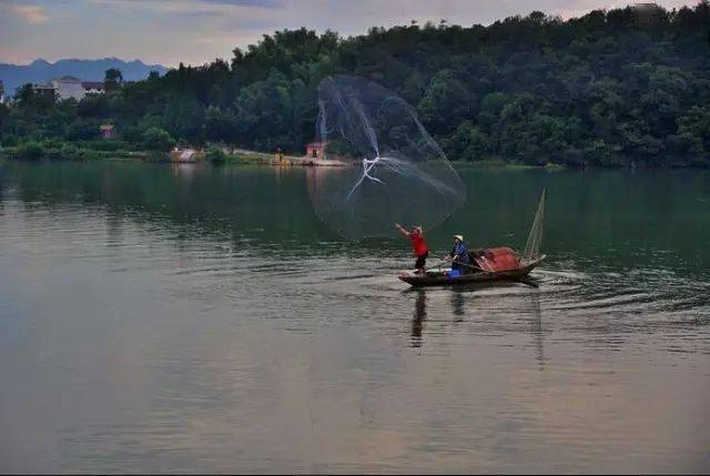同樣的撒網(wǎng),湖南小東江的紅衣漁民,也屢次出鏡。每天都是一身紅衣,在青山綠水之間,確實(shí)亮眼。