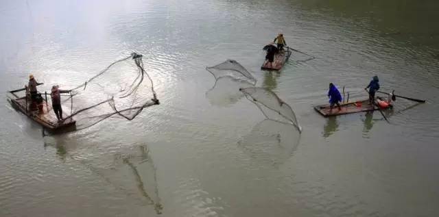 上船之后,對講機(jī)里傳來了熟悉的“走位”指令,漁民們駕輕就熟的隨著指令劃船、撒網(wǎng)。