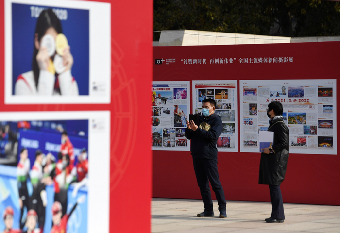 當(dāng)日,“禮贊新時(shí)代 再創(chuàng)新偉業(yè)”全國(guó)主流媒體新聞攝影展在北京中華世紀(jì)壇展出。作為北京國(guó)際攝影周“國(guó)家形象”主題板塊,本次展覽精選出280多個(gè)攝影專(zhuān)版和300余幅新聞攝影作品參展。