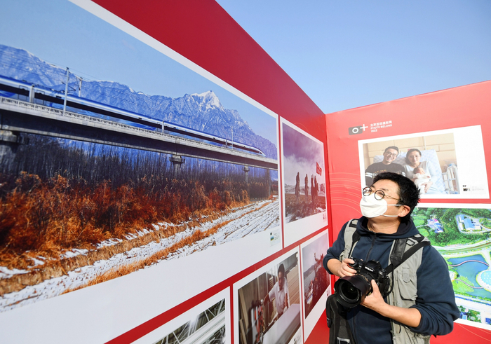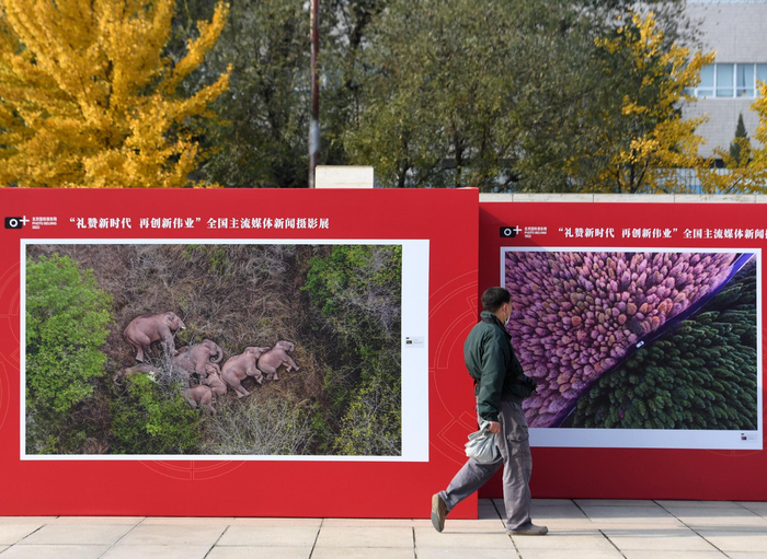 這是11月10日在中華世紀(jì)壇拍攝的“禮贊新時(shí)代 再創(chuàng)新偉業(yè)”全國(guó)主流媒體新聞攝影展現(xiàn)場(chǎng)。新華社記者 張晨霖 攝