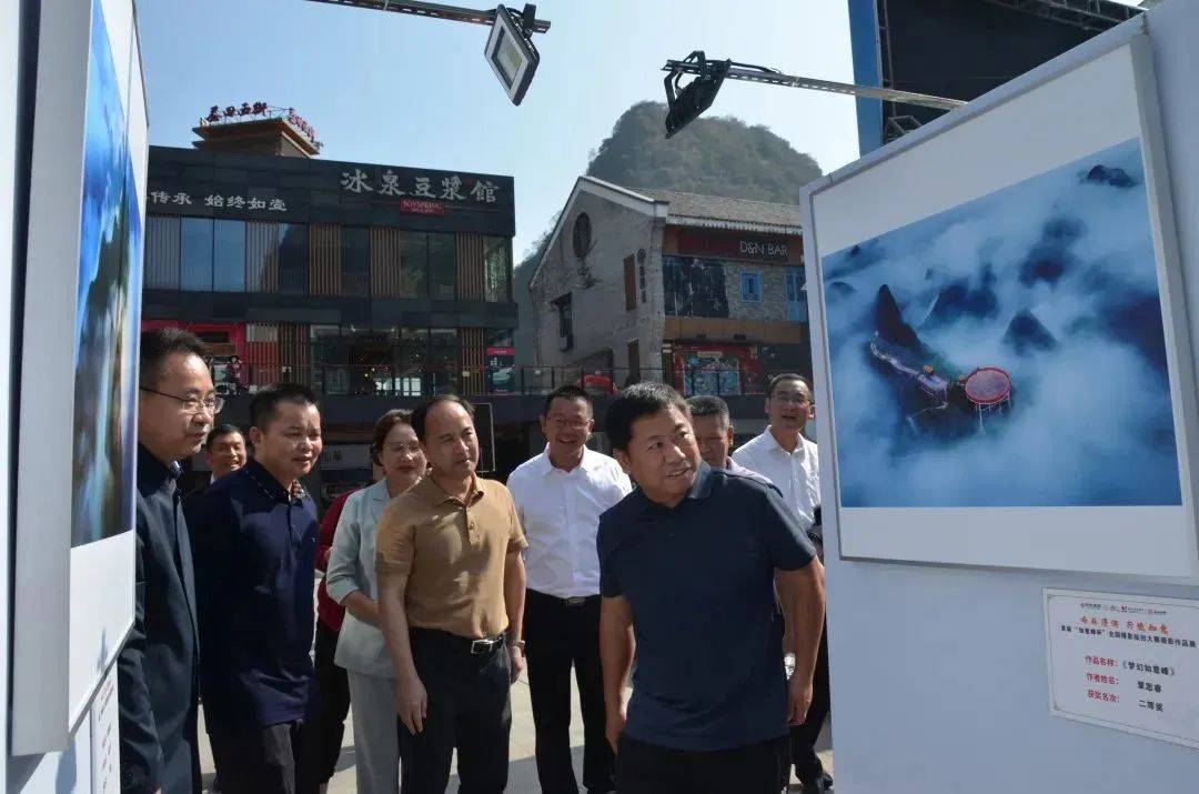 陽朔縣政協(xié)主席曾杰剛,陽朔縣委常委、縣人武部政委黃金強,陽朔縣委常委、宣傳部部長覃麗,陽朔縣人民政府副縣長吳勇等一行參觀了攝影作品展。