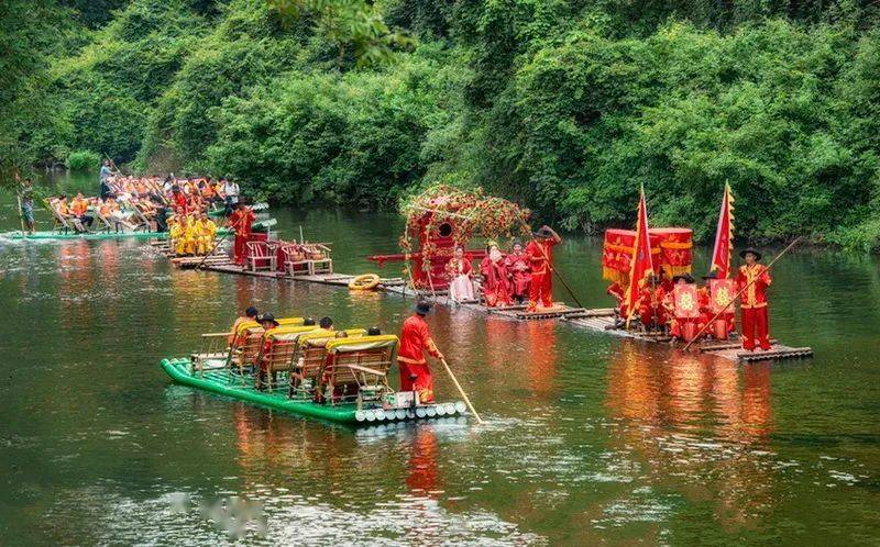 楊溪婚俗文化水上竹筏迎親展示 胡其昌 攝