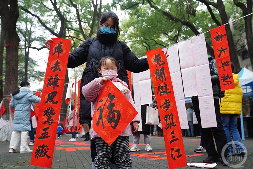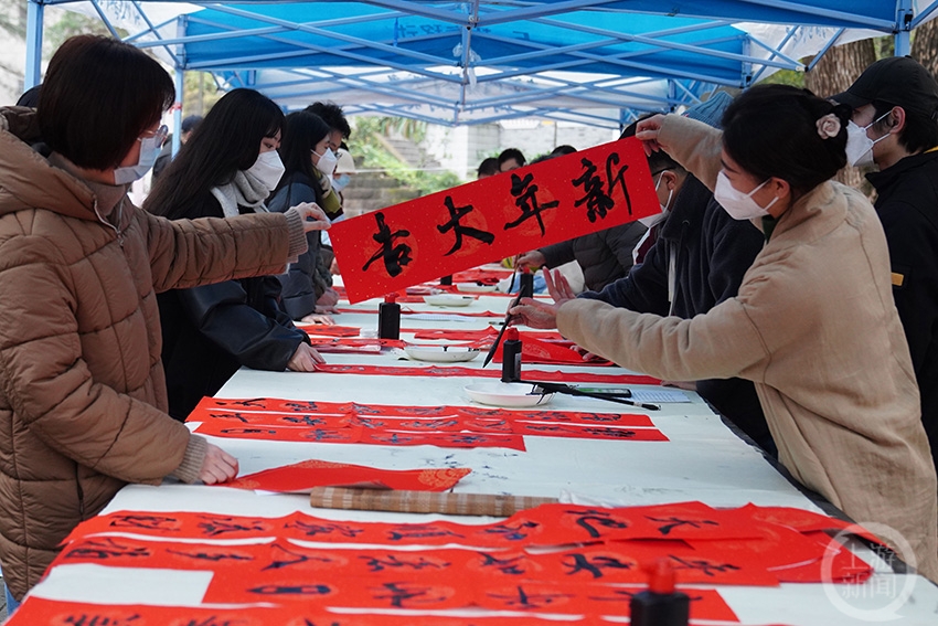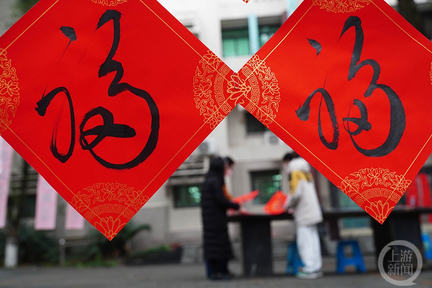 1月3日,在位于重慶市北碚的西南大學(xué),該校美術(shù)學(xué)院組織書法教師和學(xué)生愛(ài)好者書寫對(duì)聯(lián)和福字,為全校師生送去新春祝福,喜迎新年到來(lái)。